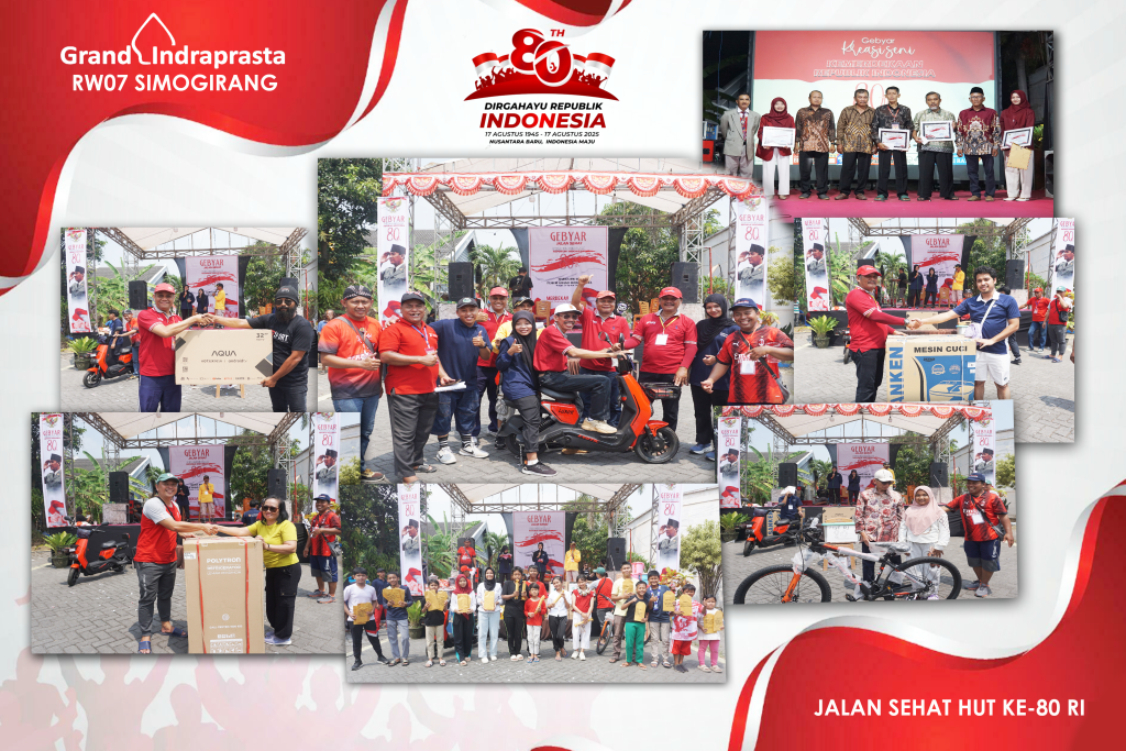 Dalam rangka memperingati Hari Ulang Tahun Republik Indonesia yang ke 80 Tahun maka Panitia HUT RI berkerja sama dengan Kartar RW (Karang Taruna), Pengurus RW dan Pengurus RT setempat untuk mengadakan Lomba Kebersihan tingkat RT dan juga Jalan Sehat di lingkungan RW07 Perum Grand Indraprasta Prambon Simogirang.