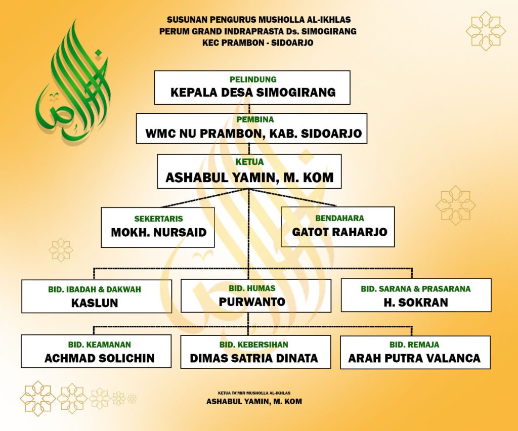 Susunan Pengurus Musholah Al-Ikhlas RW07 Struktur Pengurus Musholah Al-Ikhlas Perum Grand Indraprasta Prambon RW07 Simogirang